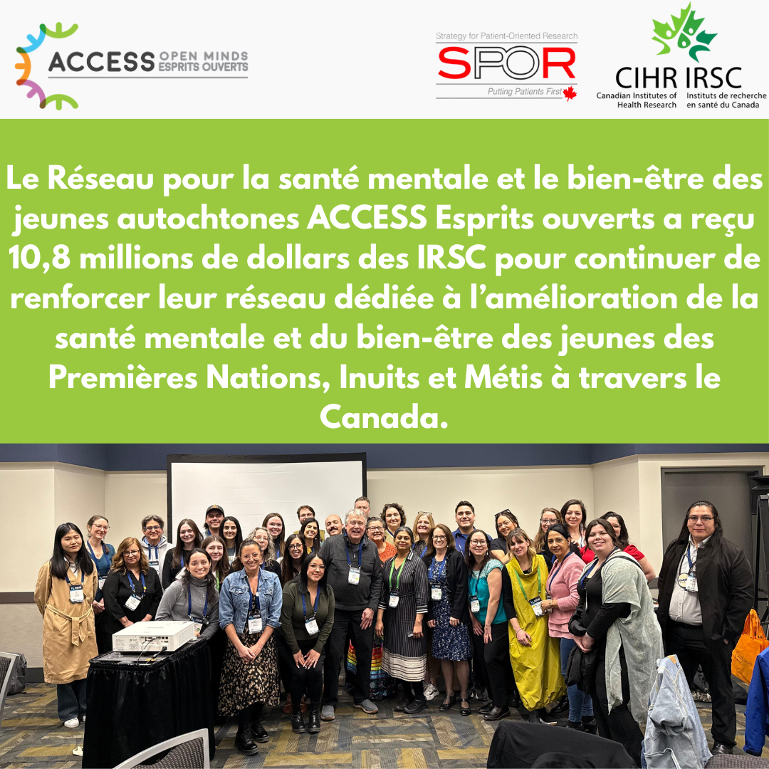 Nous sommes ravis d’annoncer que le Réseau pour la santé mentale et le bien-être des jeunes Autochtones ACCESS Esprits Ouverts (AEO) a reçu 10,8 millions de dollars sur quatre ans (2025-2029) dans le cadre de la Phase 2 de l’initiative de financement de l'Initiative Réseau de réseaux –...